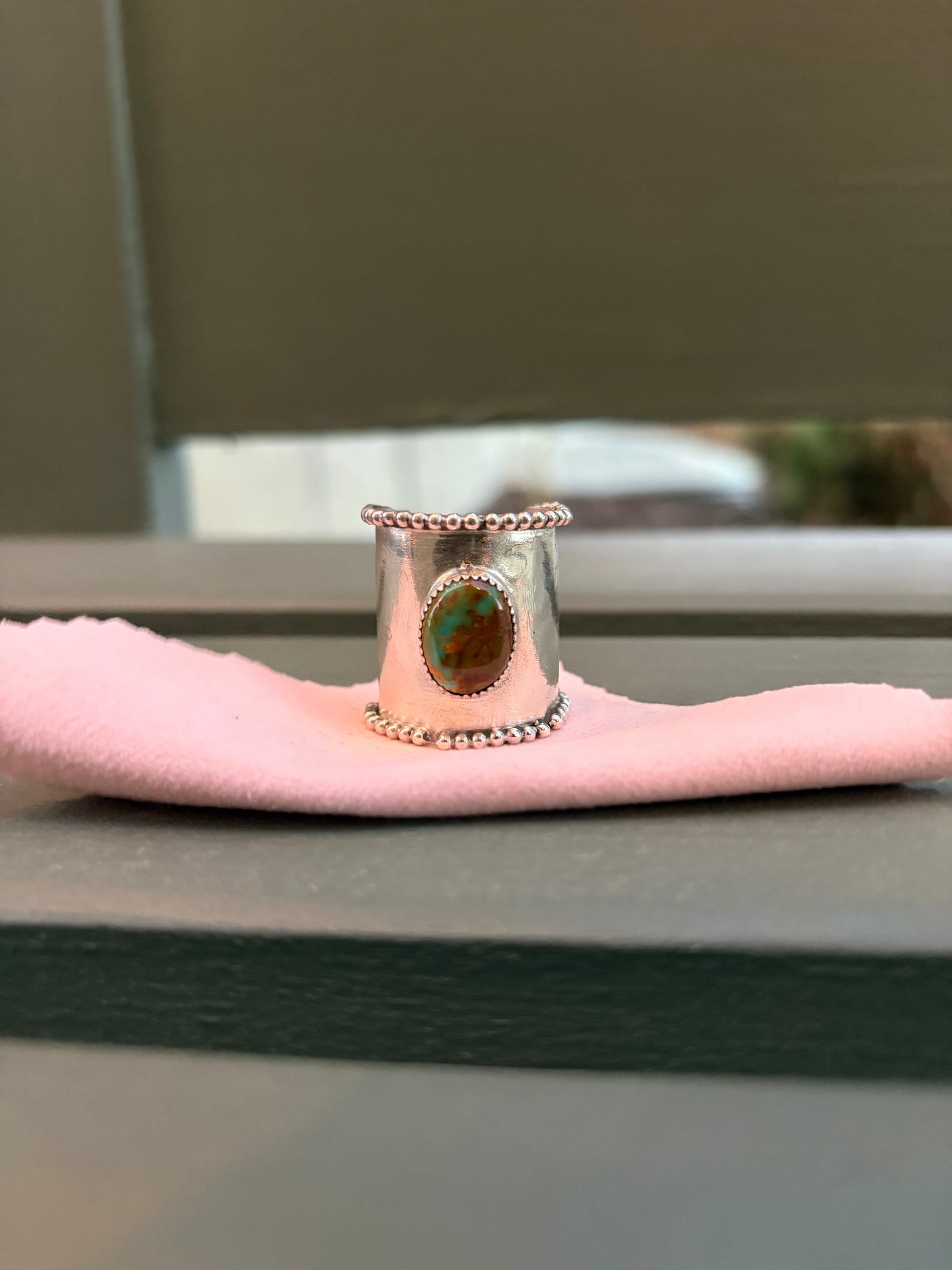 Royston ribbon hair cuff. Genuine stones and sterling silver. Pliable to wrap around hair. Does have some minor cosmetic flaws. Nothing wrong with structure!